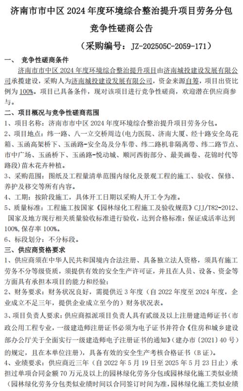 濟(jì)南市市中區(qū)2024年度環(huán)境綜合整治提升項(xiàng)目勞務(wù)分包 競爭性磋商公告